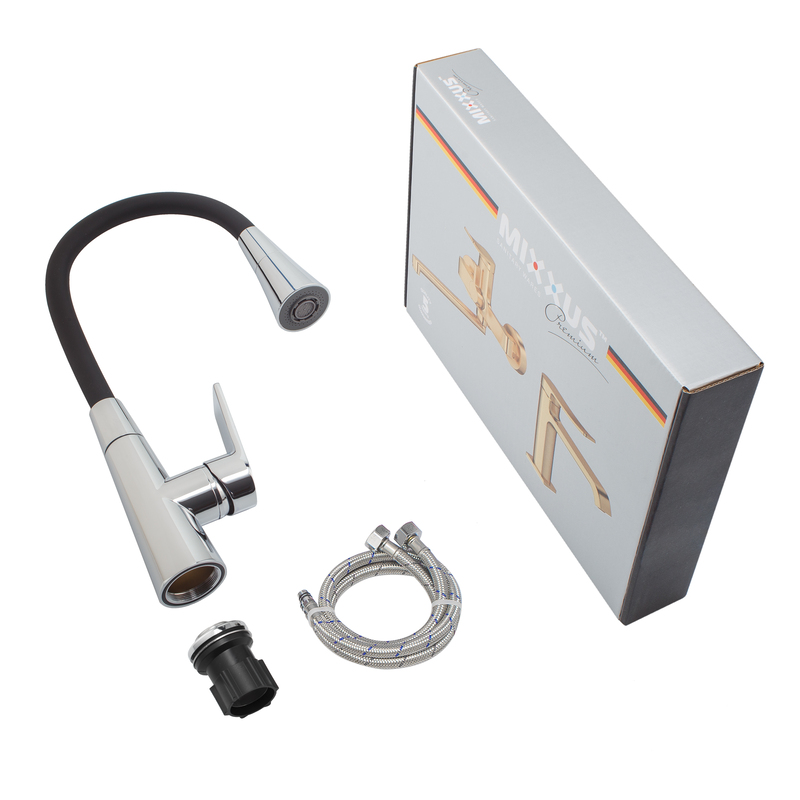 Кухонный смеситель Mixxus Premium Matis 011-T с гибким изливом, хром/черный (MI8266)