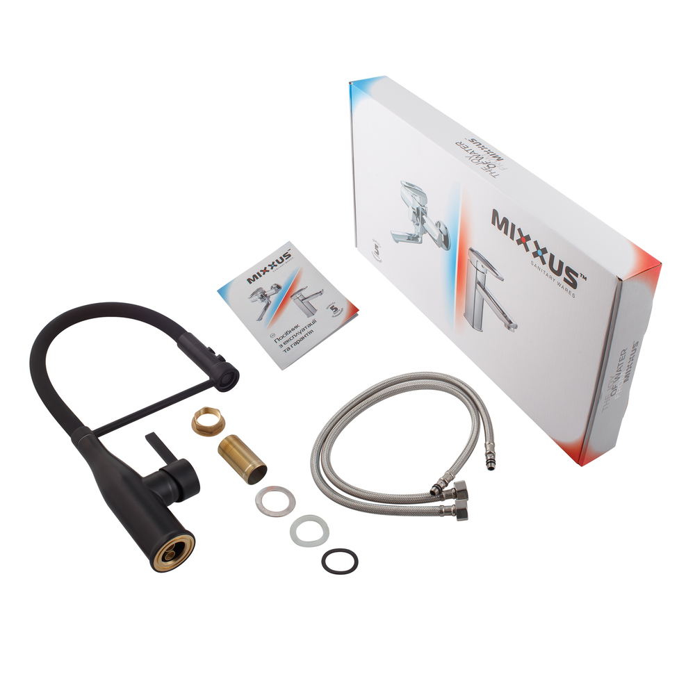 Кухонный смеситель Mixxus Premium Summer 017 с гибким изливом, черный матовый (MI6961)