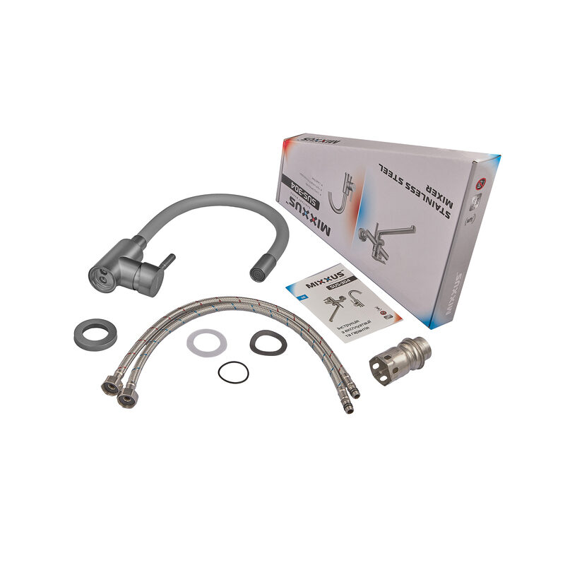 Кухонный смеситель Mixxus SEO-011 с гибким изливом, серый (MI8225)