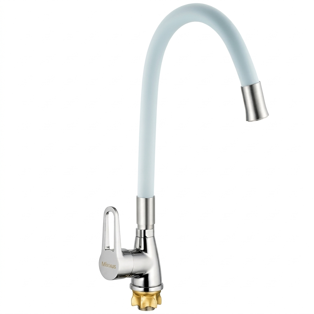 Кухонный смеситель Mixxus SOP4-045 с гибким изливом, хром/белый (MI6488)