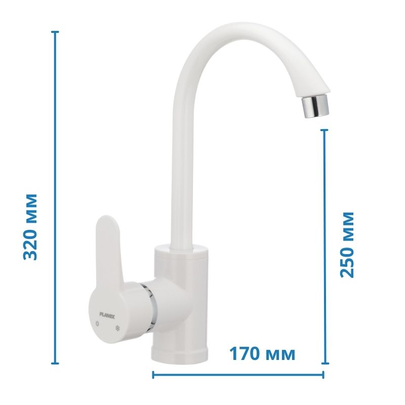 Смеситель для кухни Plamix Leon-011 однорычажный, белый (PM0009)
