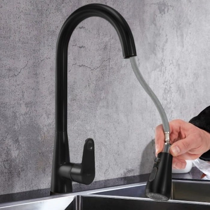 Смеситель для кухни Rea Mild с вытяжным изливом, черный матовый (REA-B4800)