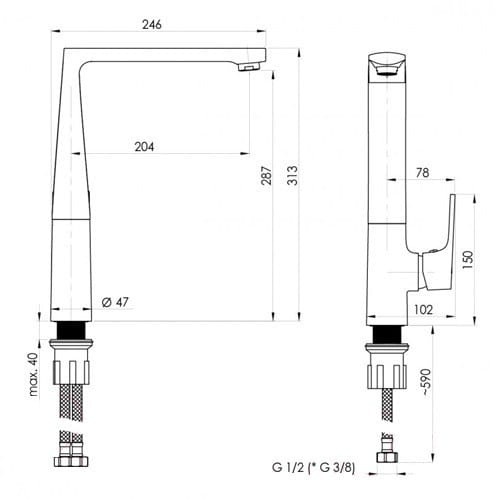 | Тип излива | Г-образный, Поворотный, Высокий |