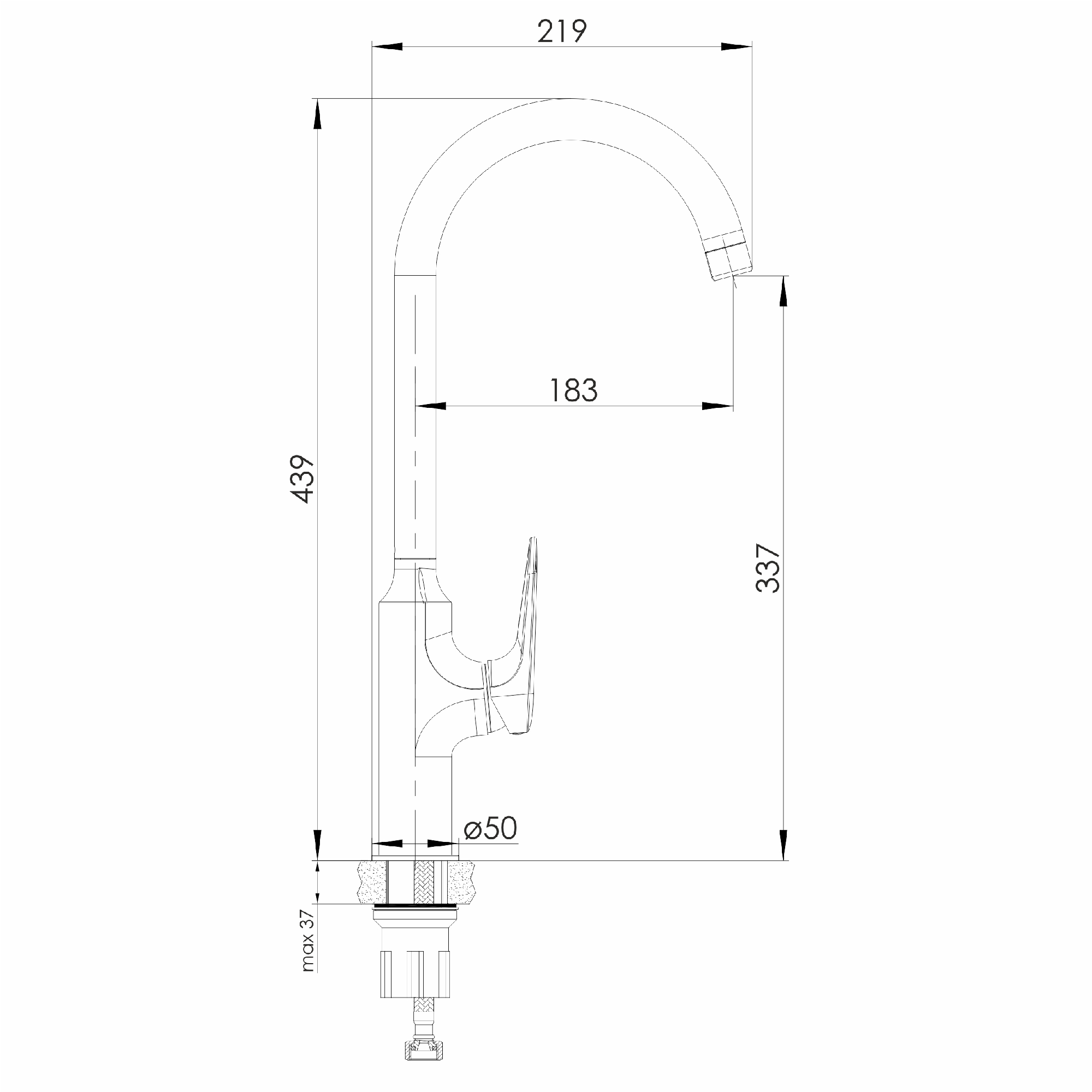 | Высота смесителя, мм | 439 |
