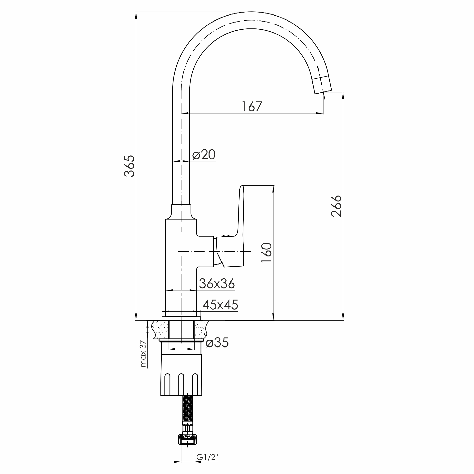 | Высота смесителя, мм | 365 |