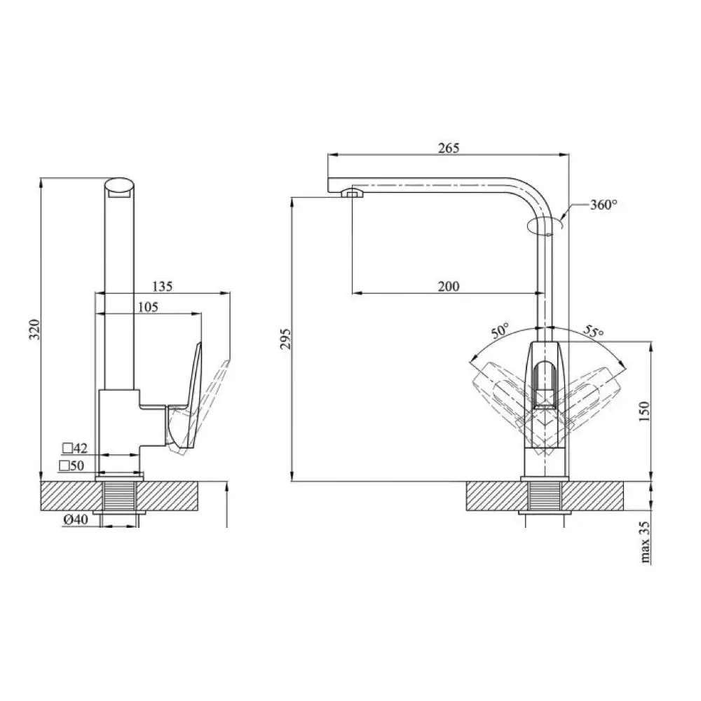 | Тип излива | Г-образный, Поворотный, Высокий |
