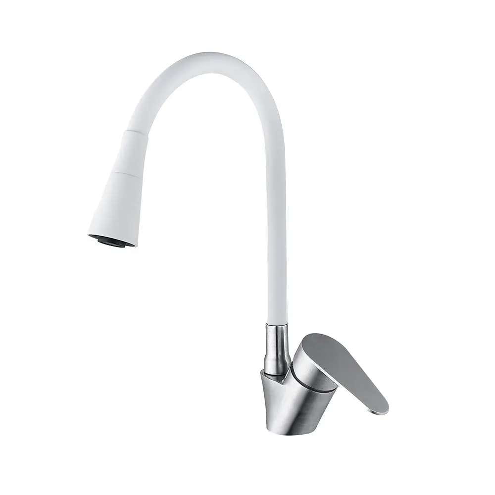 Смеситель для кухни Wezer POD4Y-04W однорычажный, сатин/белый (1055188)