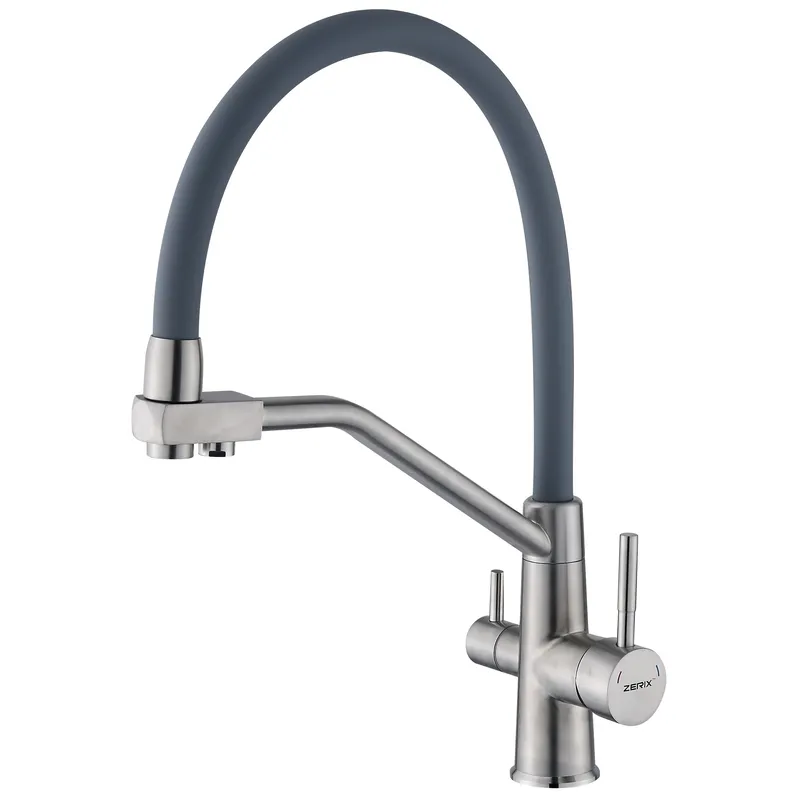 Смеситель для кухни Zerix Ful-021 двухрычажный, сталь (ZX5998)