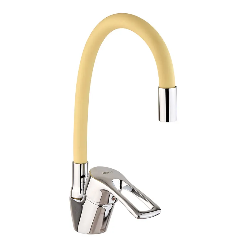 Кухонный смеситель Zerix YUB 181 с гибким изливом, хром/желтый (ZX4976)