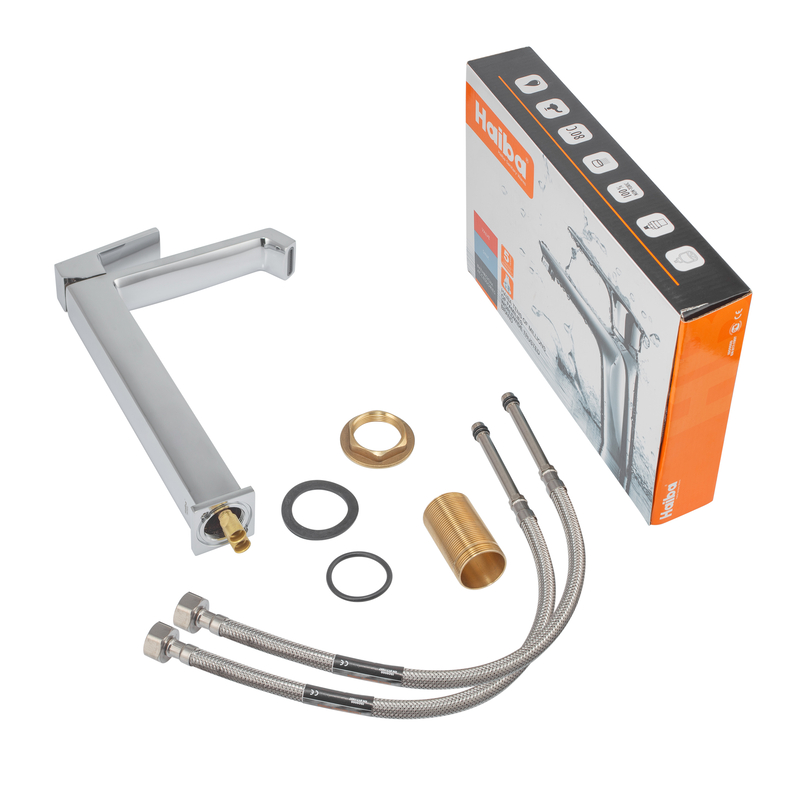 Смеситель для раковины Haiba Gaudi 001 High однорычажный, хром (HB9592)