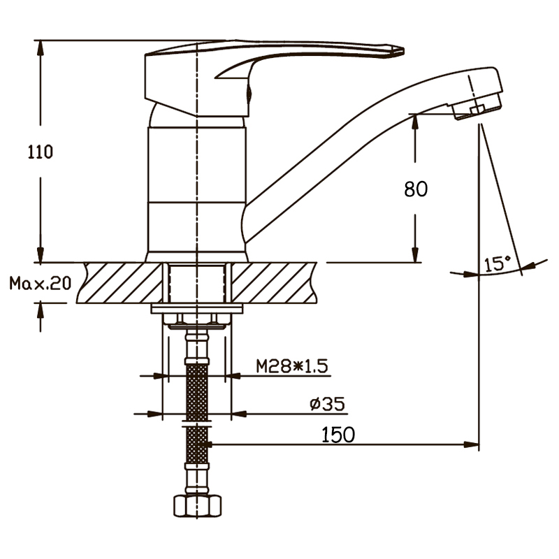| Высота смесителя, мм | 110 |