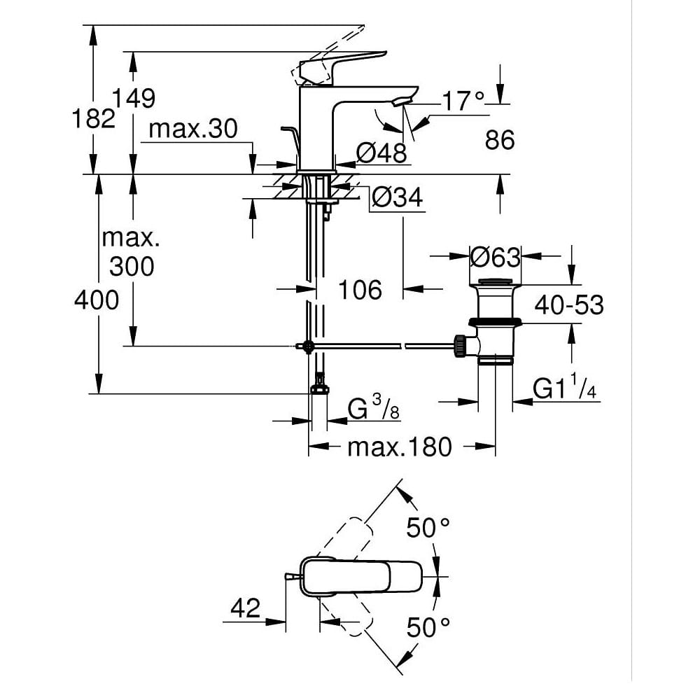 | Комплектация | Донный клапан, Гибкая подводка, Инструкция, Крепление, Смеситель для умывальника |