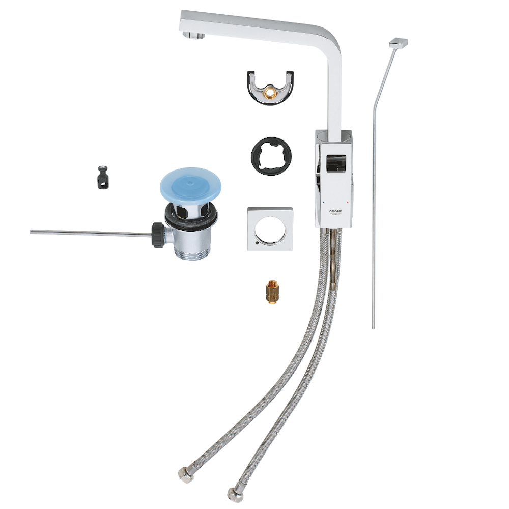 | Комплектация | Донный клапан, Гибкая подводка, Инструкция, Крепление, Смеситель для умывальника |
