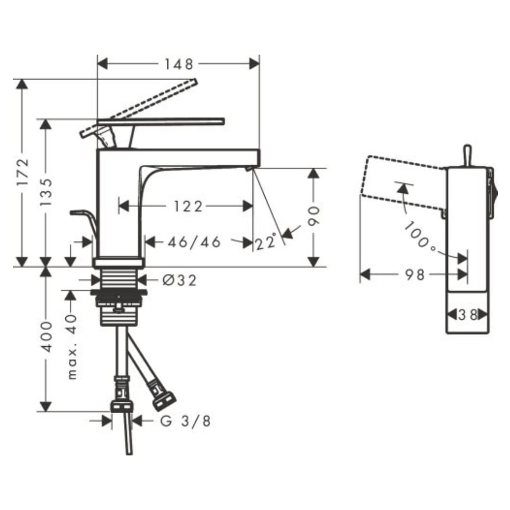 Смеситель для умывальника Hansgrohe Tecturis E CoolStart, EcoSmart+ однорычажный, хром (73002000)