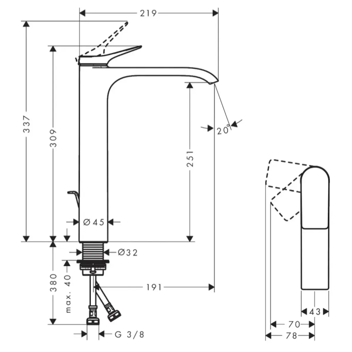 | Длина излива, мм | 191 |