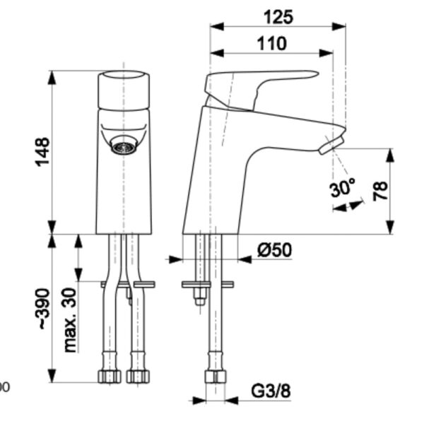 Комплектация | Донный клапан, Смеситель, Шланги подключения |
