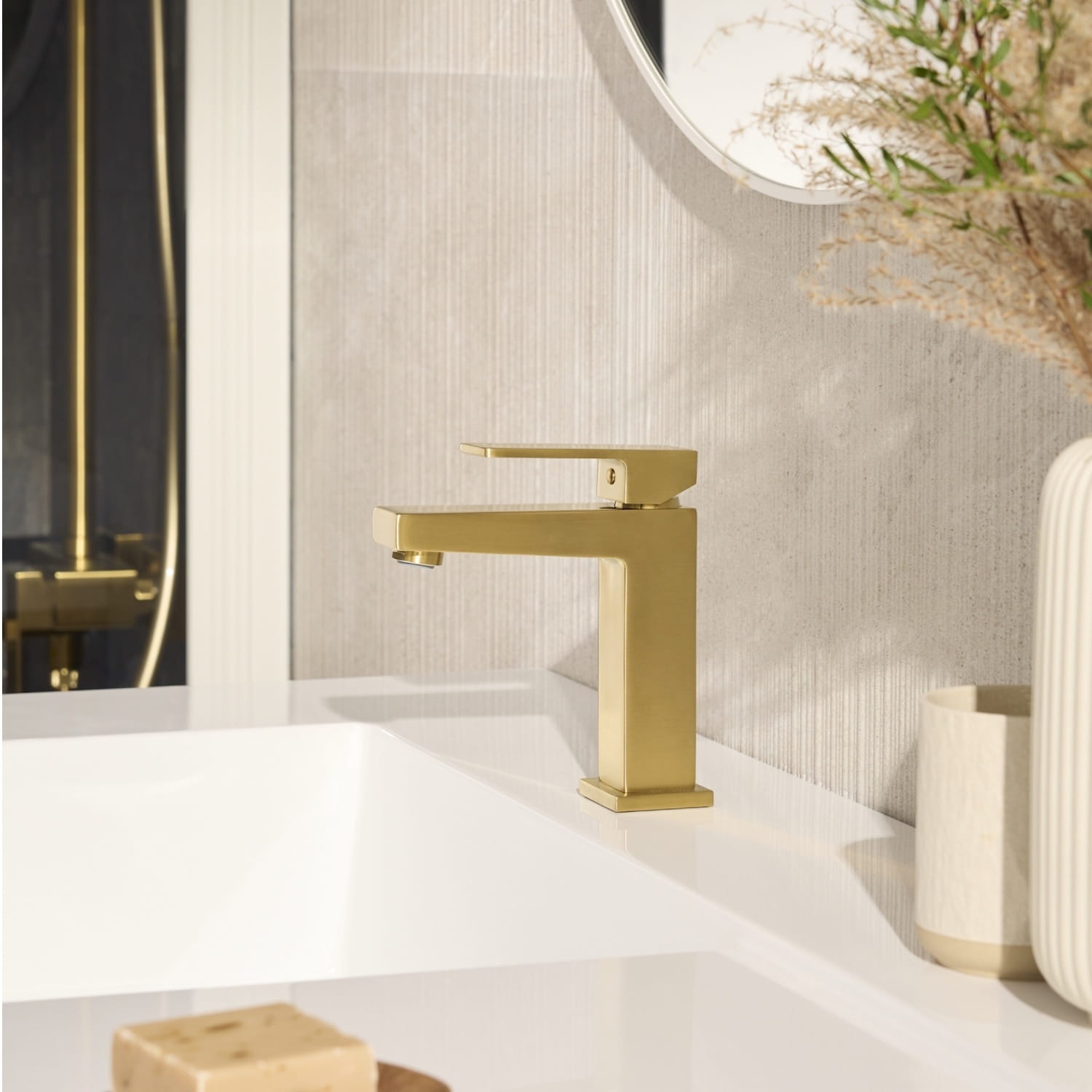 Смеситель для умывальника KFA Armatura Logon однорычажный, матовое золото (5132-815-39)