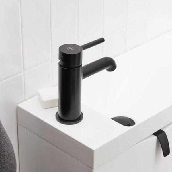 Смеситель для умывальника KFA Armatura Moza однорычажный, черный матовый + донный клапан (5032-815-81)