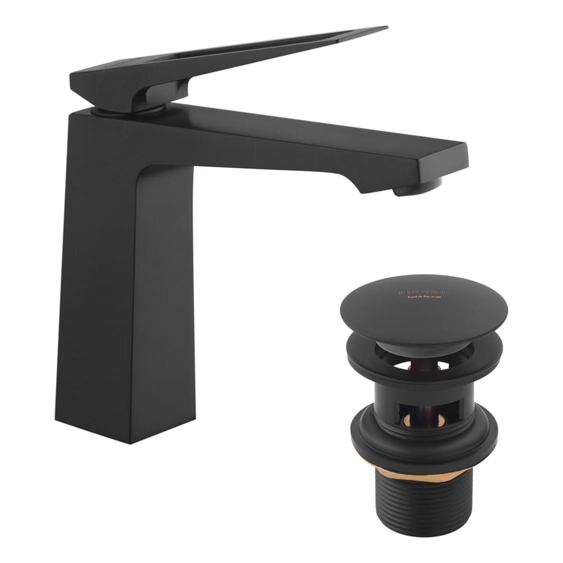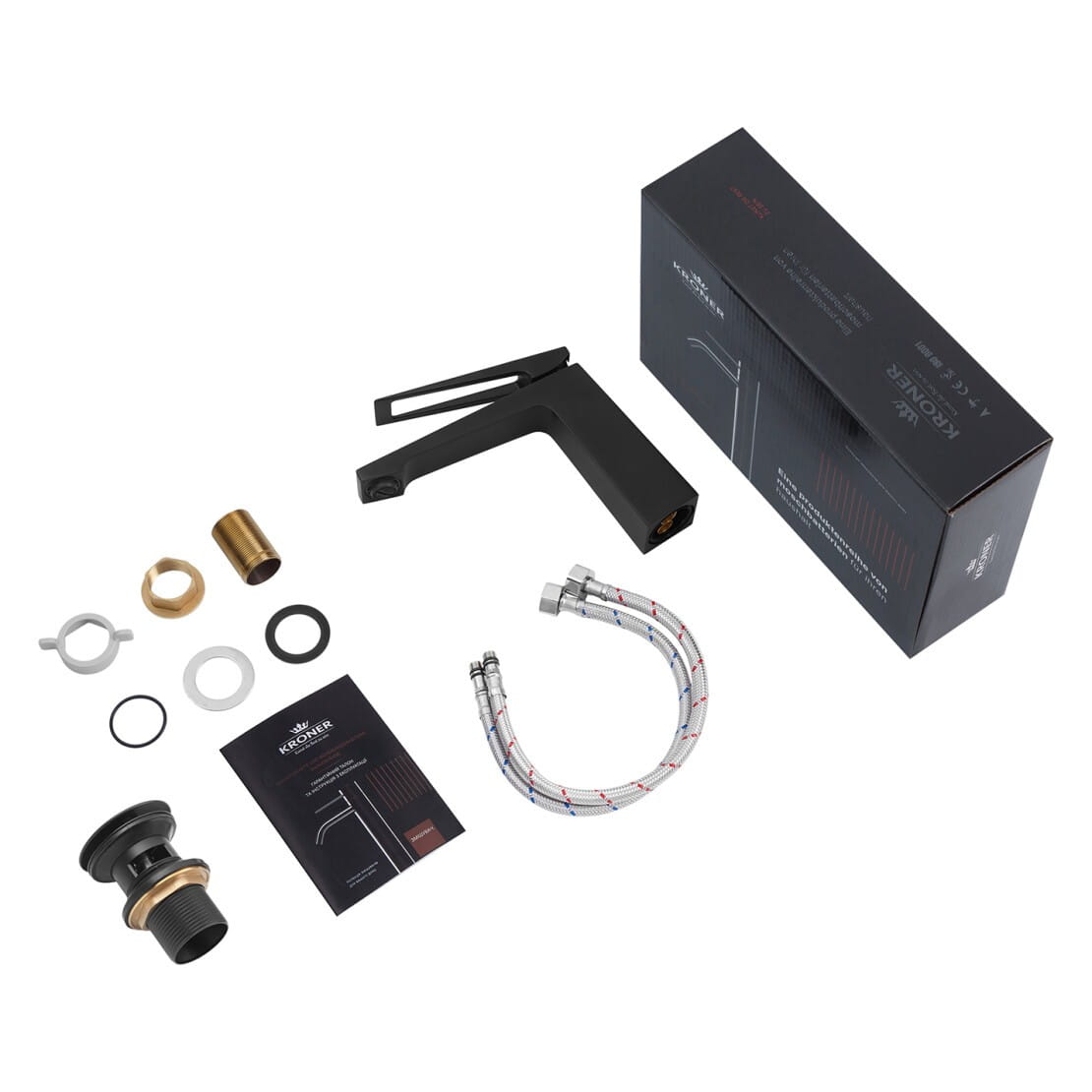 Смеситель для умывальника Kroner KRP Ersel – SCH0110BV однорычажный, черный матовый + донный клапан (CV035473)
