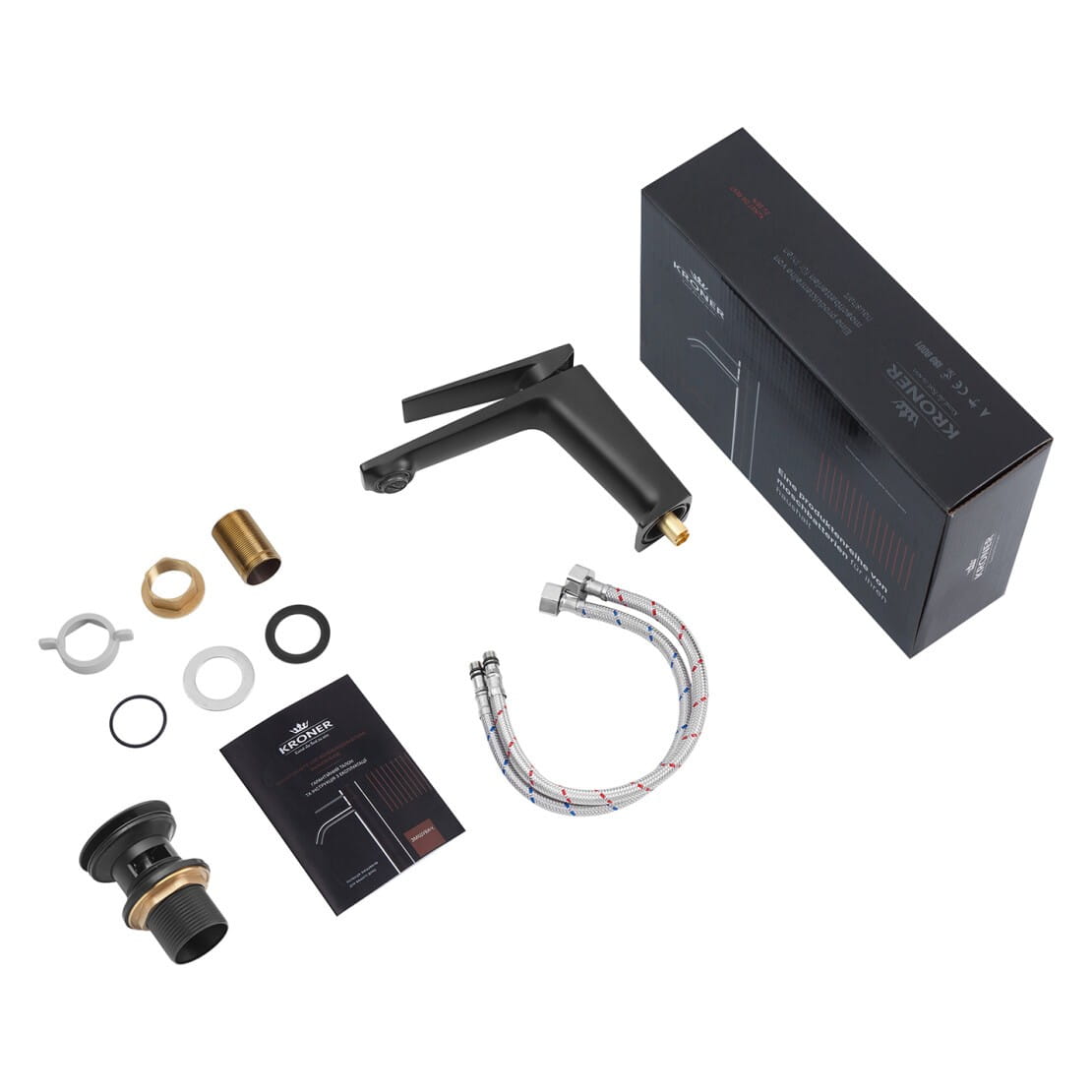 Смеситель для умывальника Kroner KRP Ersel – SCH0111BV однорычажный, черный матовый + донный клапан (CV035470)