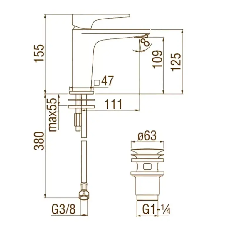 | Высота излива, мм | 109 |