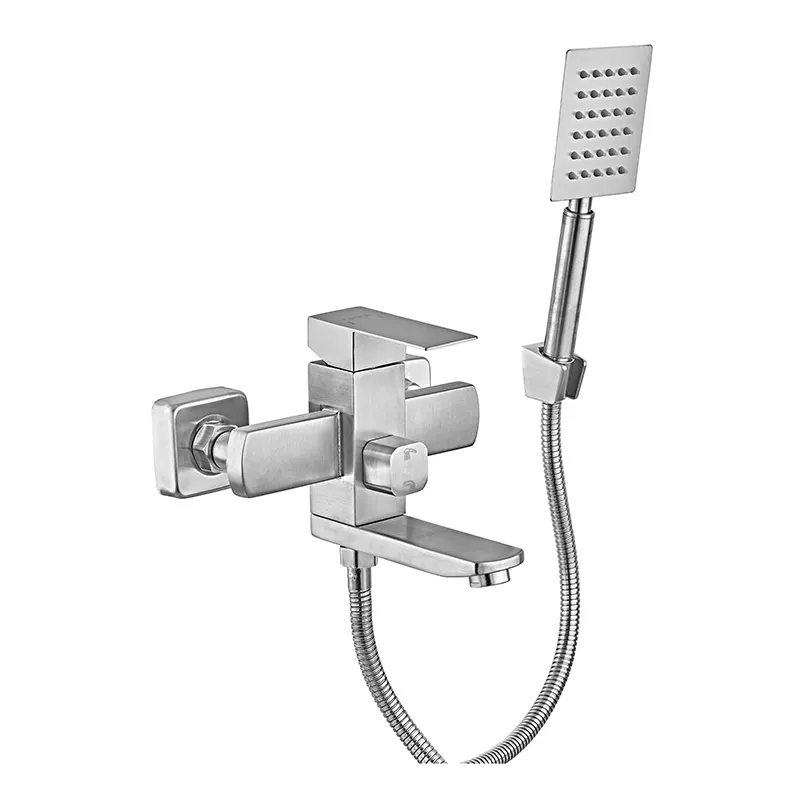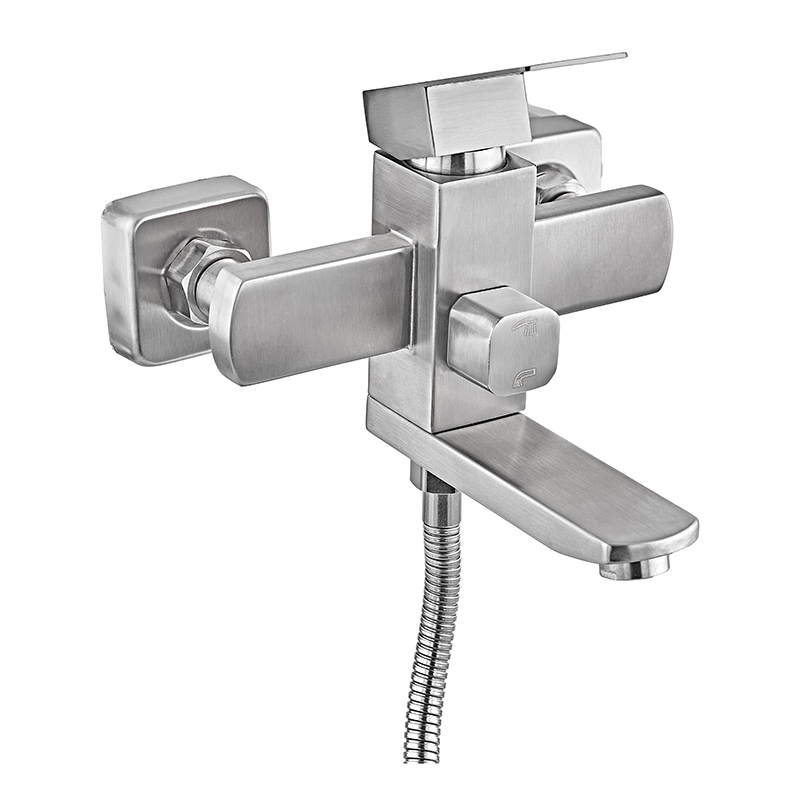 Смеситель для ванны Armata Kub – 009 однорычажный, нержавеющая сталь + ручная лейка (CH6493)