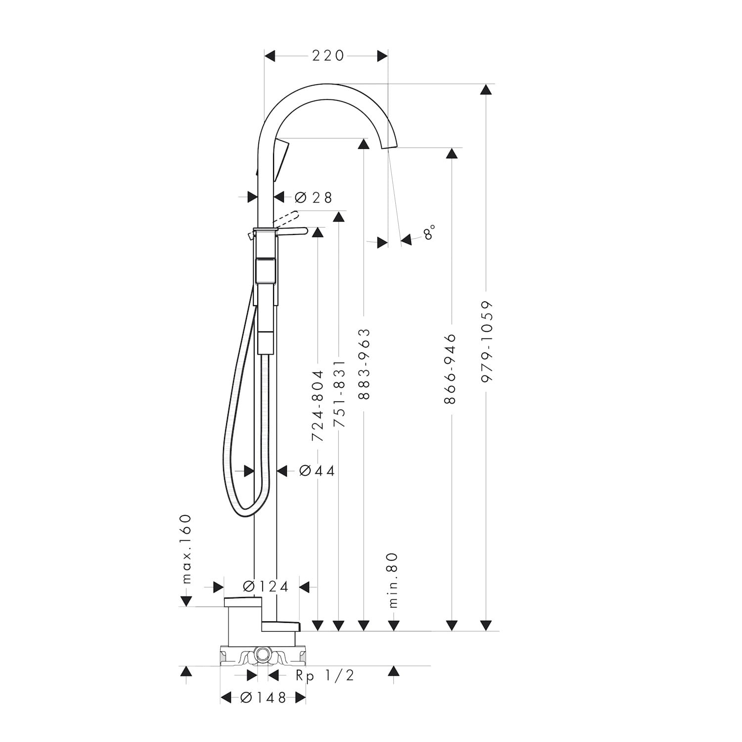 | Комплектация | Держатель для ручного душа, Излив, Напольная стойка, Ручной душ, Рычаг смесителя, Шланг для душа |