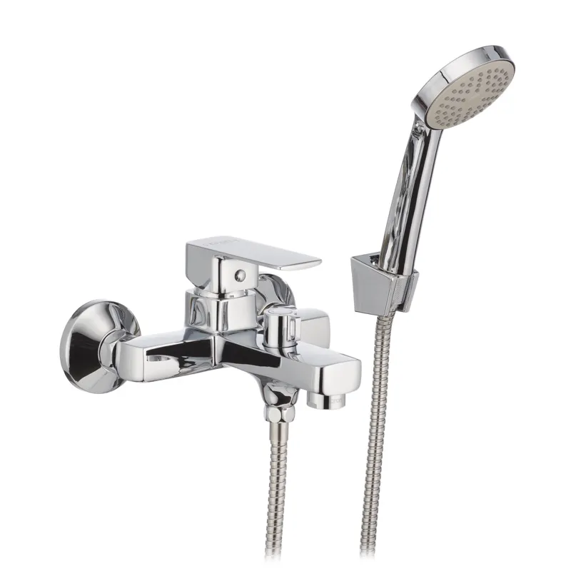 Смеситель для ванны Cron Kubus 009 однорычажный, хром + ручная лейка (CR0205)