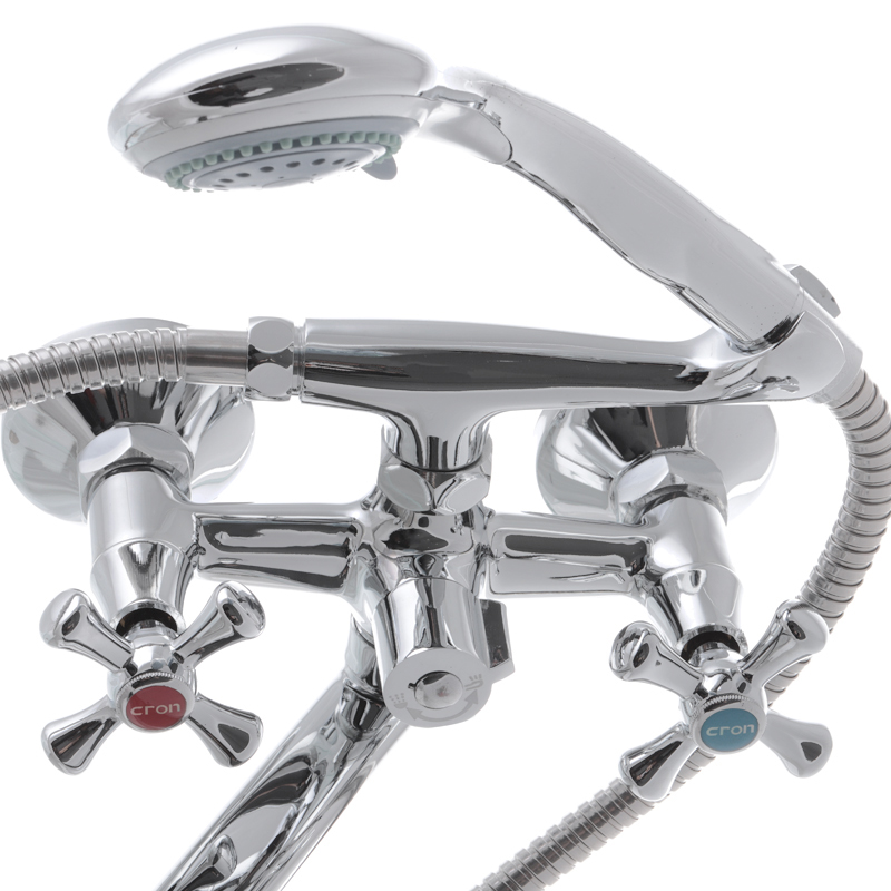 Смеситель для ванны Cron Smes 140 двухвентильный, хром + ручная лейка (CR0062)