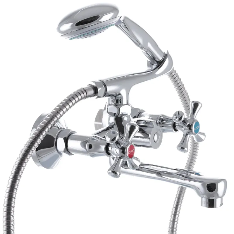 Смеситель для ванны Cron Smes 142 двухвентильный, хром + ручная лейка (CR0063)