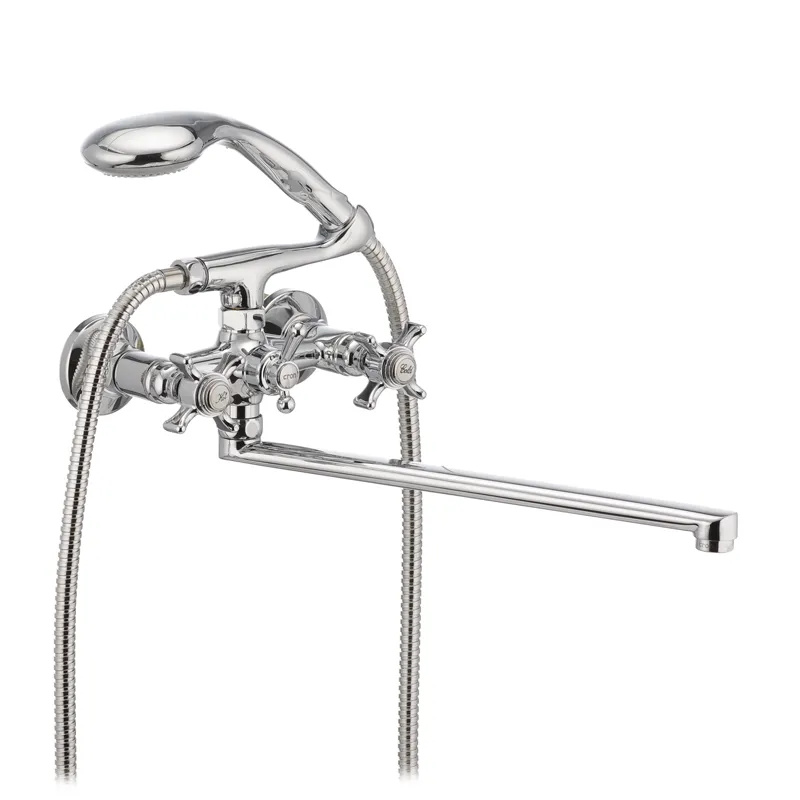 Смеситель для ванны Cron Zeus 143 двухвентильный, хром + ручная лейка (CR0078)