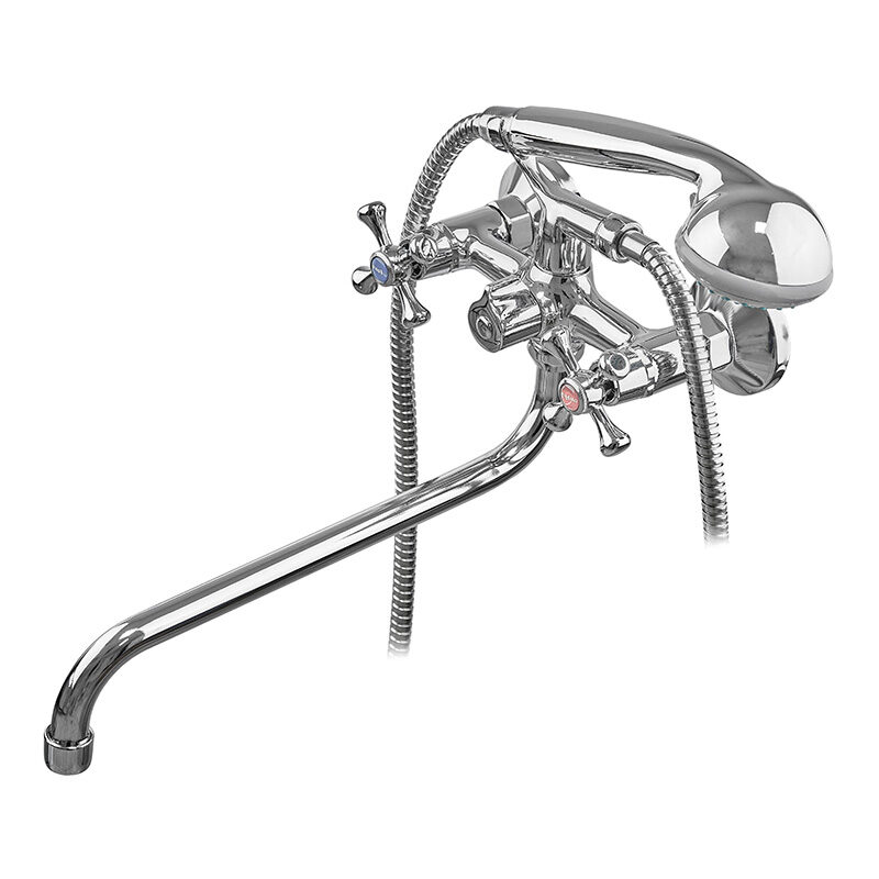 Смеситель для ванны G-Ferro 140 двухвентильный, хром + ручная лейка (FE0019)
