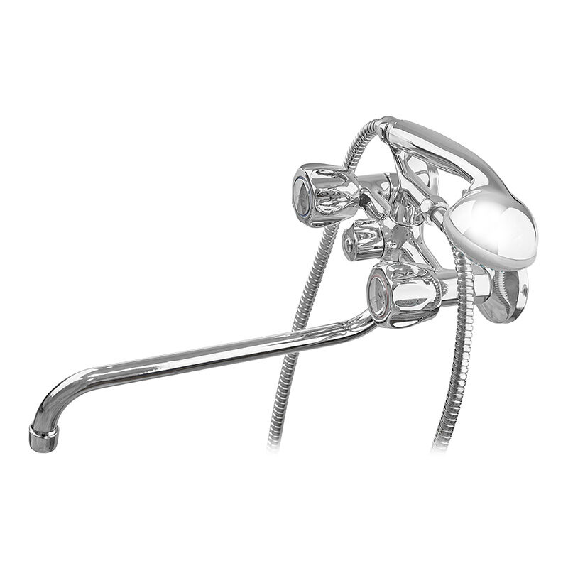 Смеситель для ванны G-Ferro 140 двухвентильный, хром + ручная лейка (FE0021)