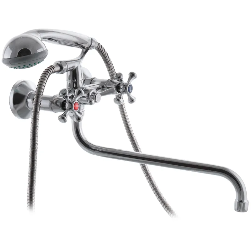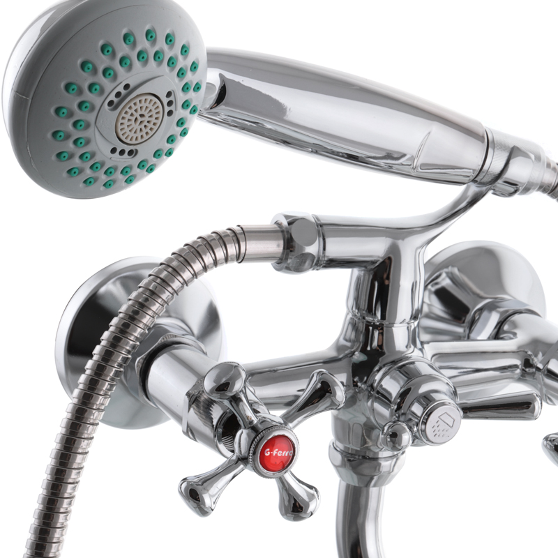 Смеситель для ванны G-Ferro 143 двухвентильный, хром + ручная лейка (FE0013)