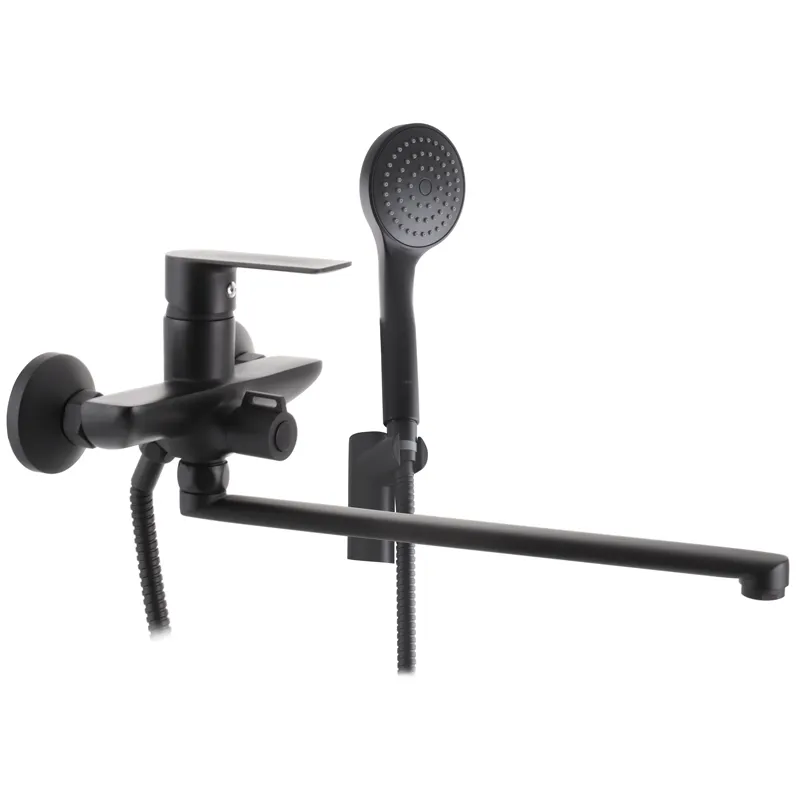 Смеситель для ванны Haiba Alex однорычажный, черный + ручная лейка (HB3925)