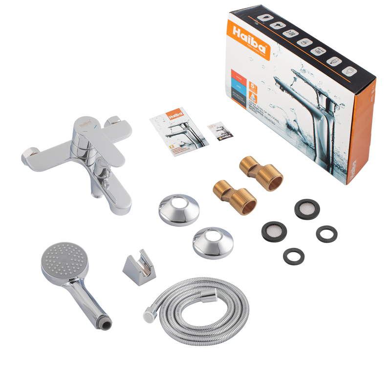 Смеситель для ванны Haiba Daniel 009 однорычажный, хром + ручная лейка (HB1013)