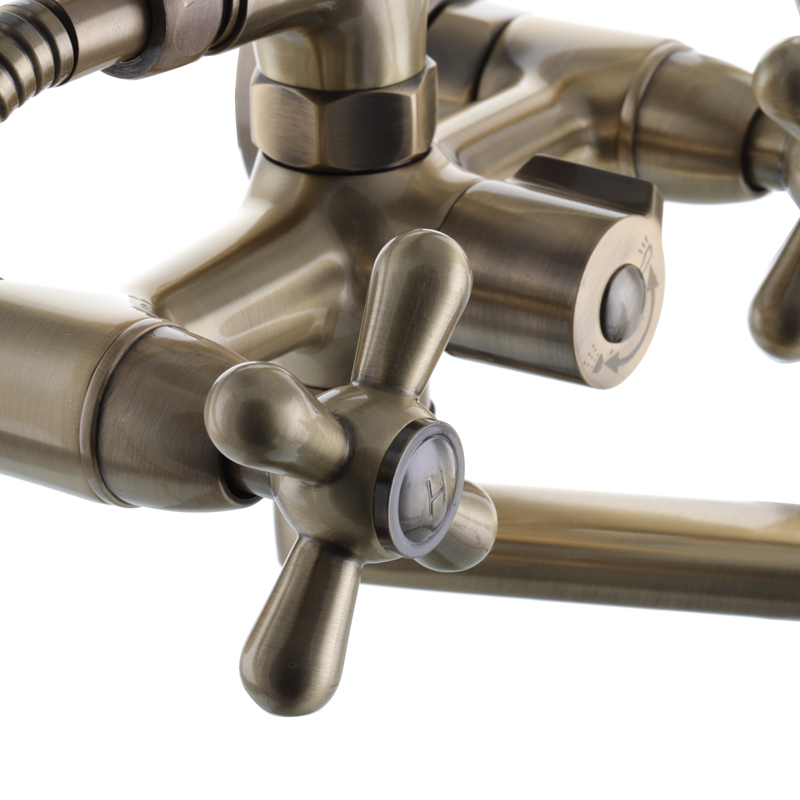 Смеситель для ванны Haiba Dominox 140 двухвентильный, бронзовый + ручная лейка (HB0062)