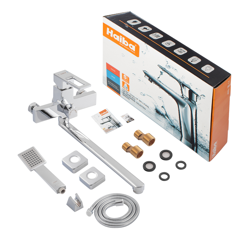 Смеситель для ванны Haiba Kant 006 однорычажный, хром + ручная лейка (HB9602)