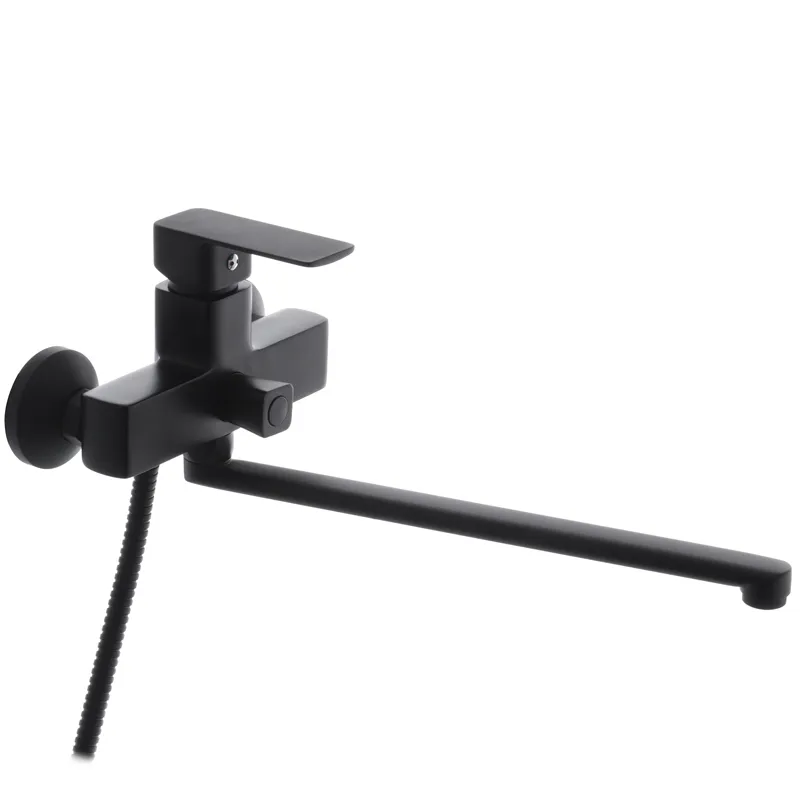 Смеситель для ванны Haiba Kubus 006 однорычажный, черный матовый + ручная лейка (HB3931)