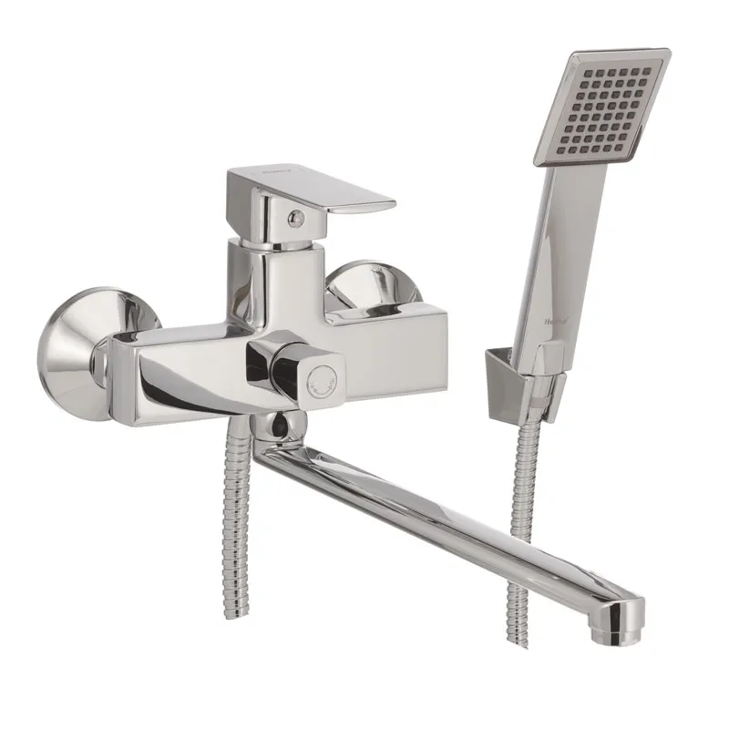 Смеситель для ванны Haiba Kubus 006 однорычажный, хром + ручная лейка (HB0793)