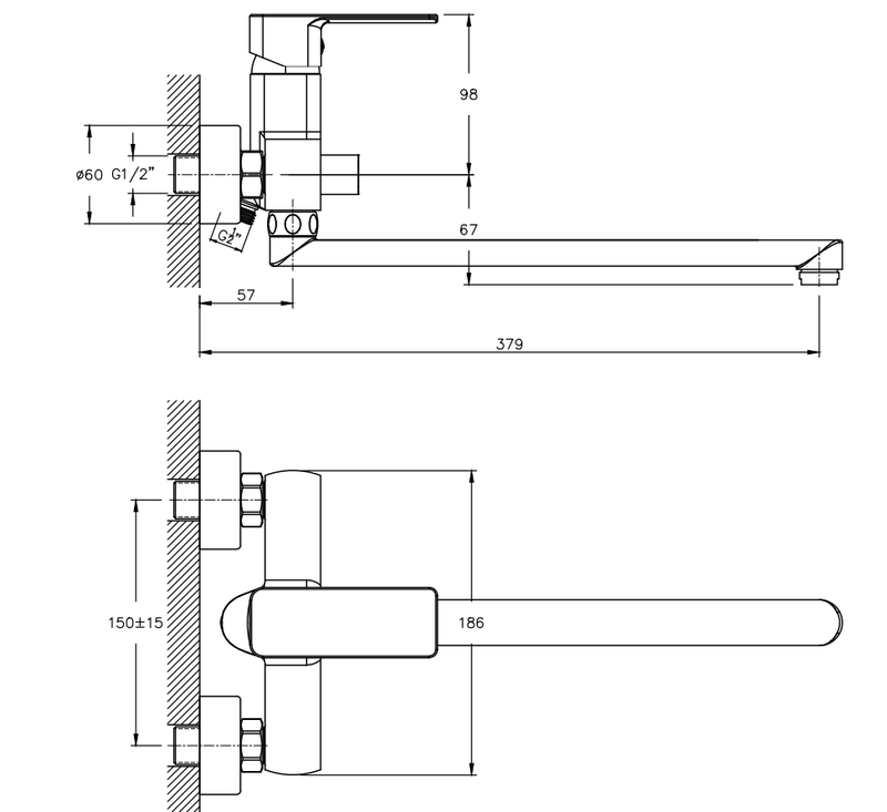 | Вид монтажа смесителя | Настенный |