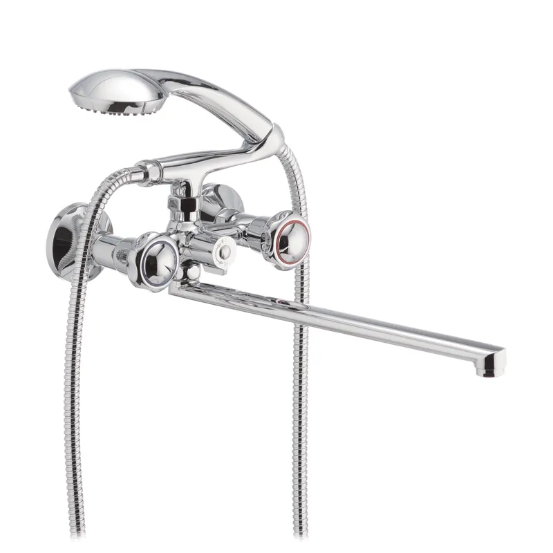 Смеситель для ванны Haiba Mega 140 двухвентильный, хром + ручная лейка (HB0915)