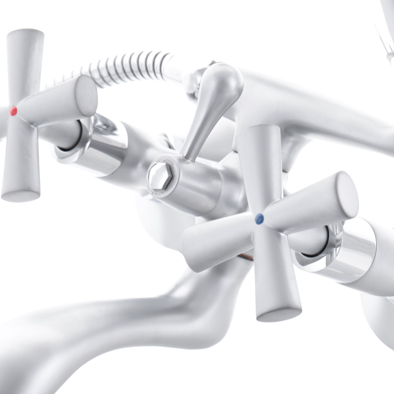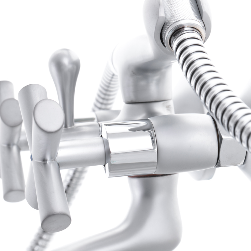 Смеситель для ванны Haiba Sentosa 009 двухвентильный, сатин + ручная лейка (HB0359)