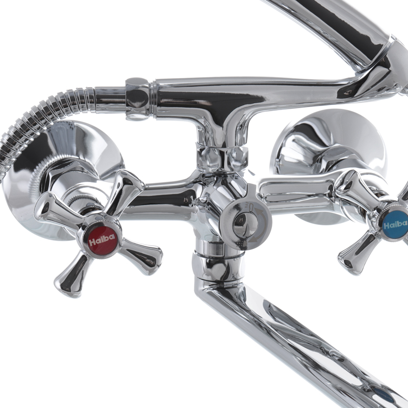 Смеситель для ванны Haiba Smes 140 двухвентильный, хром + ручная лейка (HB0366)
