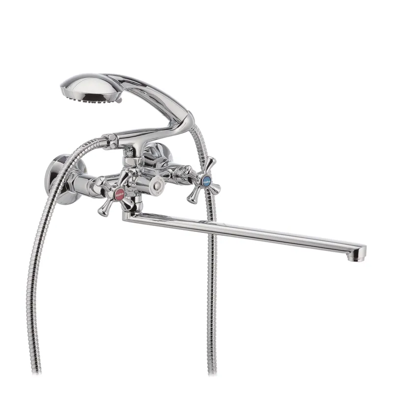 Смеситель для ванны Haiba Smes 140 двухвентильный, хром + ручная лейка (HB0780)
