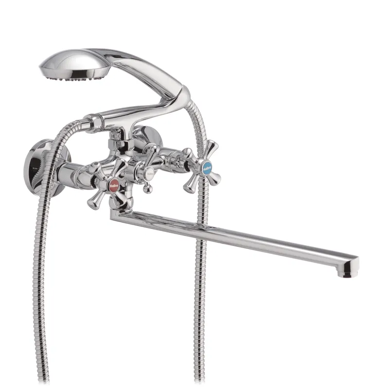 Смеситель для ванны Haiba Smes 143 двухвентильный, хром + ручная лейка (HB0368)