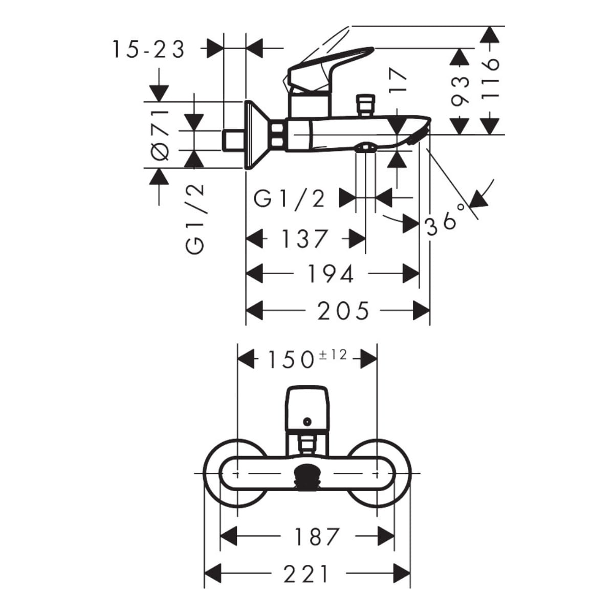 Смеситель для ванны Hansgrohe Logis однорычажный, черный матовый (71400670)