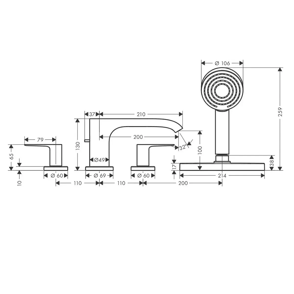 | Особенности смесителя | На 4 отверстия, С ручной лейкой |