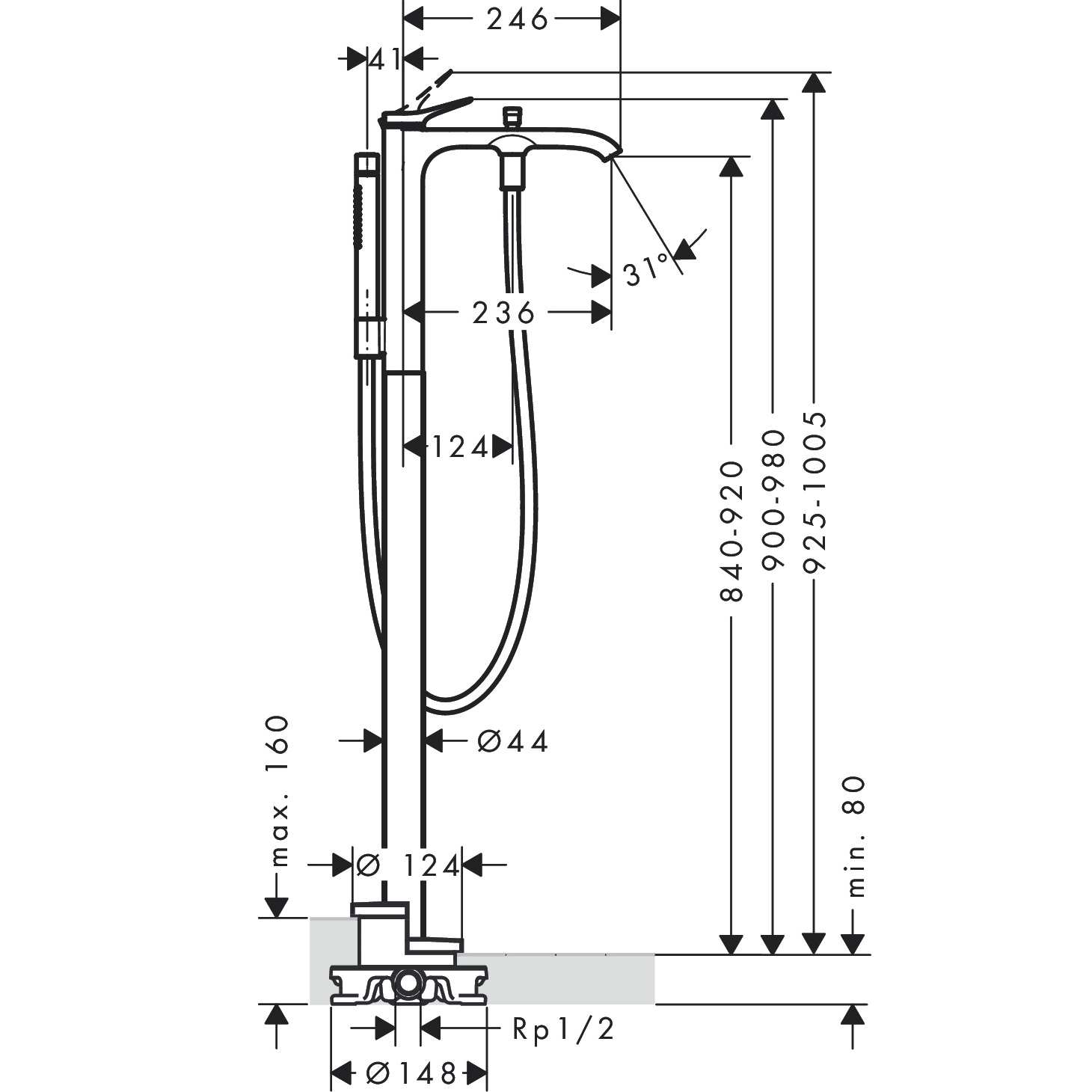 Смеситель для ванны Hansgrohe Vivenis напольный, черный матовый (75445340)