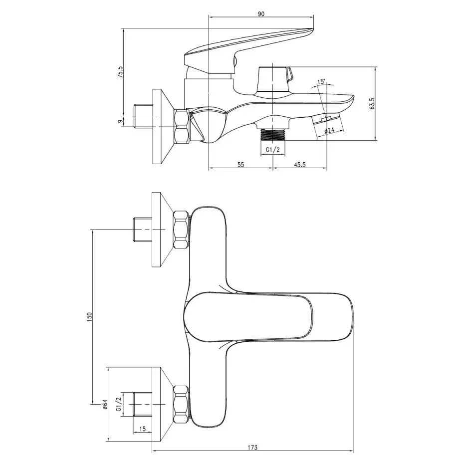 Смеситель для ванны Imprese Praha однорычажный, хром (11030)